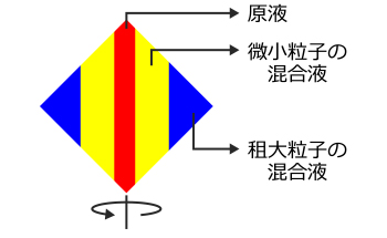 - さまざまな粒子径を含む混合液を、微小粒子の混合液と粗大粒子の混合液の分離に使用されます。