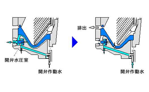 強力な自己圧逆洗浄が行えるため、最小の逆洗水量で機外へ塵芥を排出することができます。